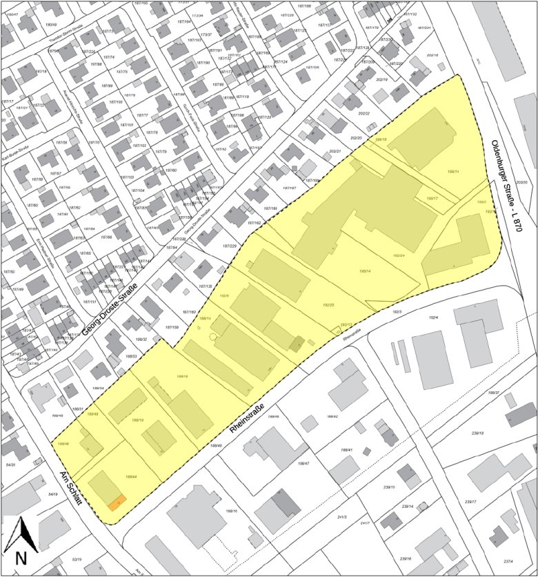 Der Verwaltungsausschuss der Gemeinde Wardenburg hat in seiner Sitzung am 29.10.2025 beschlossen, für das Bauleitplanverfahren zur Aufhebung der 3. Änderung des Bebauungsplanes Nr. 22 "Gewerbegebiet östlich der B69" (nördlich der Rheinstraße) die frühzeitige Beteiligung der Öffentlichkeit nach § 3 Abs. 1 BauGB sowie der Behörden und sonstigen Träger öffentlicher Belange nach § 4 Abs. 1 BauGB durchzuführen. Die 3. Änderung des Bebauungsplanes Nr. 22 regelt den Ausschluss von Betrieben des Lebensmitteleinzelhandels und besteht ausschließlich aus textlichen Festsetzungen ohne Planzeichnung. Aus formalen Gründen (Ausfertigungsfehler) ist die 3. Änderung des Bebauungsplanes Nr. 22 jedoch ungültig. Ziel des Verfahrens ist daher die Aufhebung der 3. Änderung des Bebauungsplanes Nr. 22, so dass nach erfolgter Aufhebung dieses Änderungsplanes im betroffenen Bereich nur noch der ursprüngliche Bebauungsplan Nr. 22 sowie die 4. Änderung des Bebauungsplanes Nr. 22 anzuwenden sind. Der Geltungsbereich ist nachfolgend ersichtlich:
