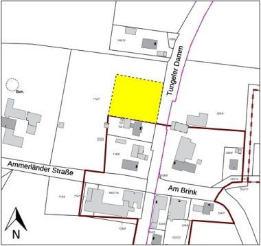 In seiner Sitzung am 11.02.2026 hat der Verwaltungsausschuss der Gemeinde Wardenburg für die Erweiterung der Innenbereichssatzung Oberlethe (Ergänzungssatzung) im Bereich Tungeler Damm beschlossen, den Entwurf im Internet (öffentliche Auslegung) gem. § 13 Abs. 2 Nr. 2 BauGB i. V. m. § 3 Abs. 2 BauGB zu veröffentlichen sowie die Beteiligung der Behörden und sonstigen Träger öffentlicher Belange gem. § 13 Abs. 2 Nr. 3 BauGB i. V. m. § 4 Abs. 2 BauGB durchzuführen. Ziel des Bauleitplanverfahrens ist die Schaffung der planungsrechtlichen Voraussetzungen zur Errichtung eines Einfamilienhauses auf einer rund 3000 m² großen Teilfläche des Flurstücks 114/7 der Flur 4 (Gemarkung Wardenburg). Der Geltungsbereich ist nachfolgend in gelber Farbe ersichtlich: